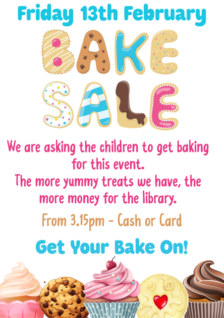 BAKE SALE - This time we are asking the children to get involved by baking yummy treats to sell on the day. Donations to be sent into school Friday morning please.